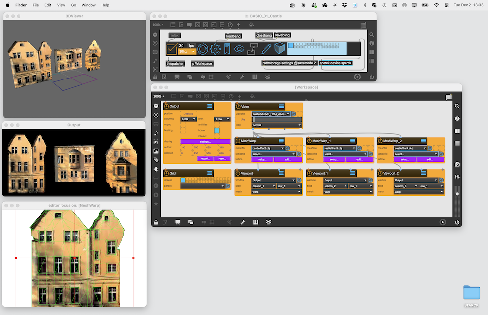 Using the MeshWarp Node to output three custom meshes to three different projectors by splitting an Window window into three Viewport